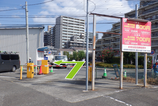 駐車場敷地内を右に曲がってください。