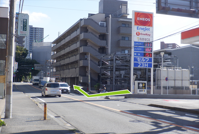 直進するとガソリンスタンド(ENEOSEnejet)が左手に見えてきます。