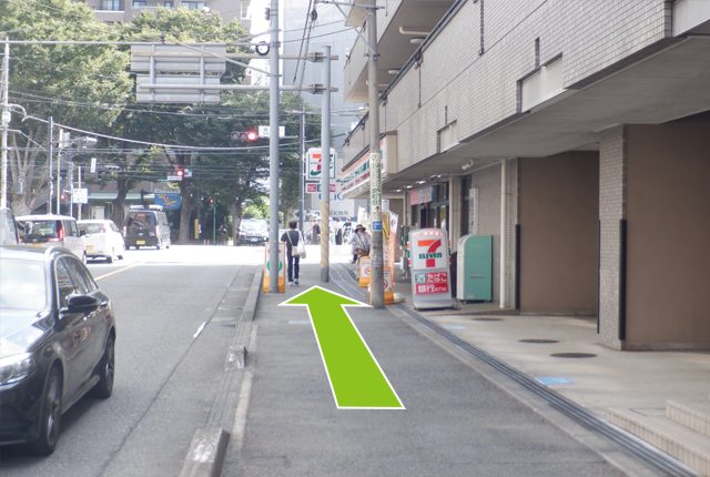 右手にセブンイレブンが見えますのでそのまま直進してください